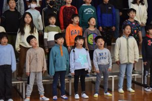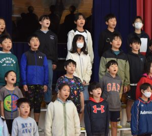 体育館には、子どもたちの澄んだ歌声が響き渡り、歌う姿からは一人一人の思いが伝わってきます。