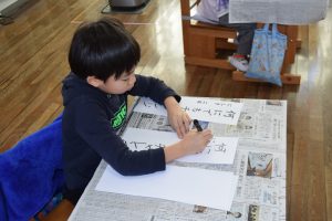 完成した作品からは、「ていねいに書こう」「最後までやりきろう」という思いが伝わってきました。新しい年の始まりにふさわしい、落ち着いた雰囲気の中で、日本の伝統文化に親しむ大切な時間となりました。